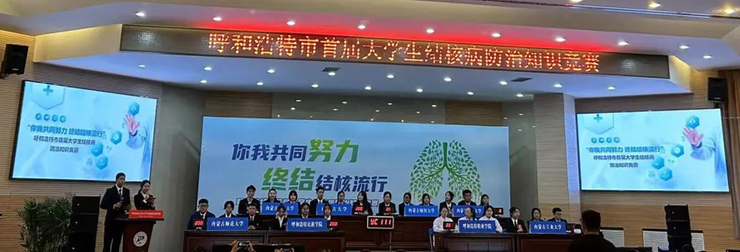 3月23日,由內蒙古自治區教育廳、內蒙古自治區衛生健康委員會、呼和浩特市衛生健康委員會主辦的呼和浩特市首屆大學生防治結核病知識競賽在內蒙古工業大學(新城校區)精彩開賽。大賽的主題是“你我共同努力 終結結核流行”。來自駐呼8所高校代表隊共24名學生參加了此次比賽。