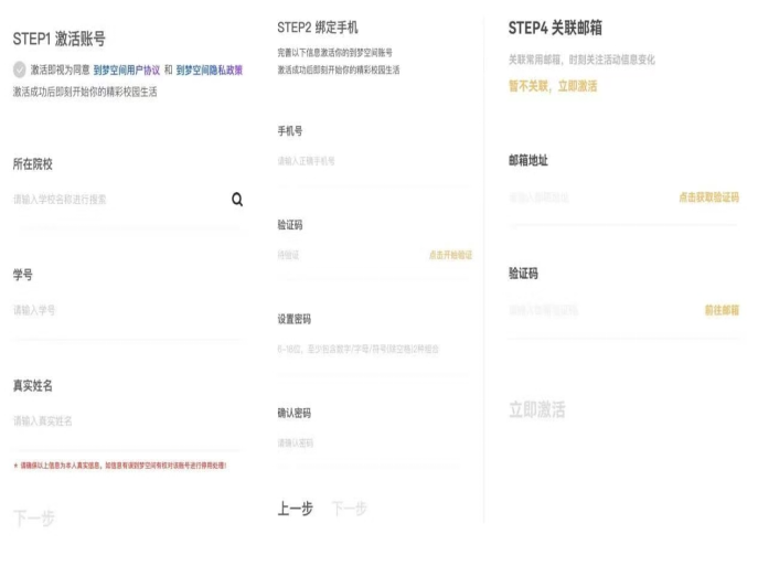 (三) 填寫信息:點擊激活賬號后,根據界面顯示如實填寫呼和浩特民族學院、姓名、學號、手機號等相關信息,填寫完畢核實無誤后,便可成功激活啦~(學號與真實姓名需與管理端導入數據一致 ,若不存在請聯系學校管理員查詢)