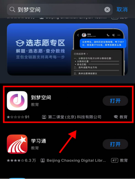 (一)在應用商城搜索“到夢空間”,認準官方圖標,下載安裝。