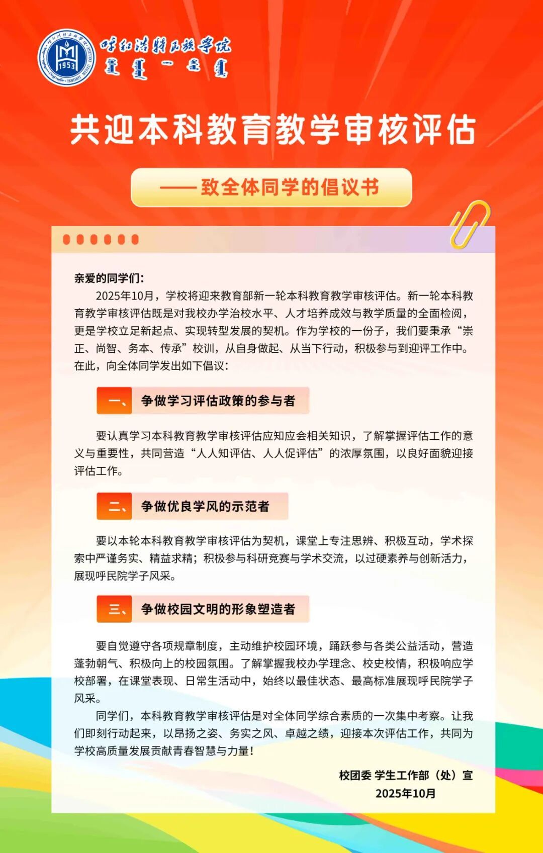 共迎本科教育教學審核評估——致全體同學的倡議書