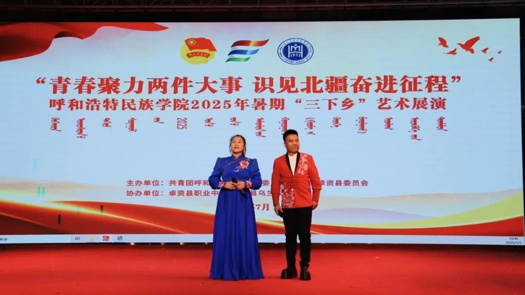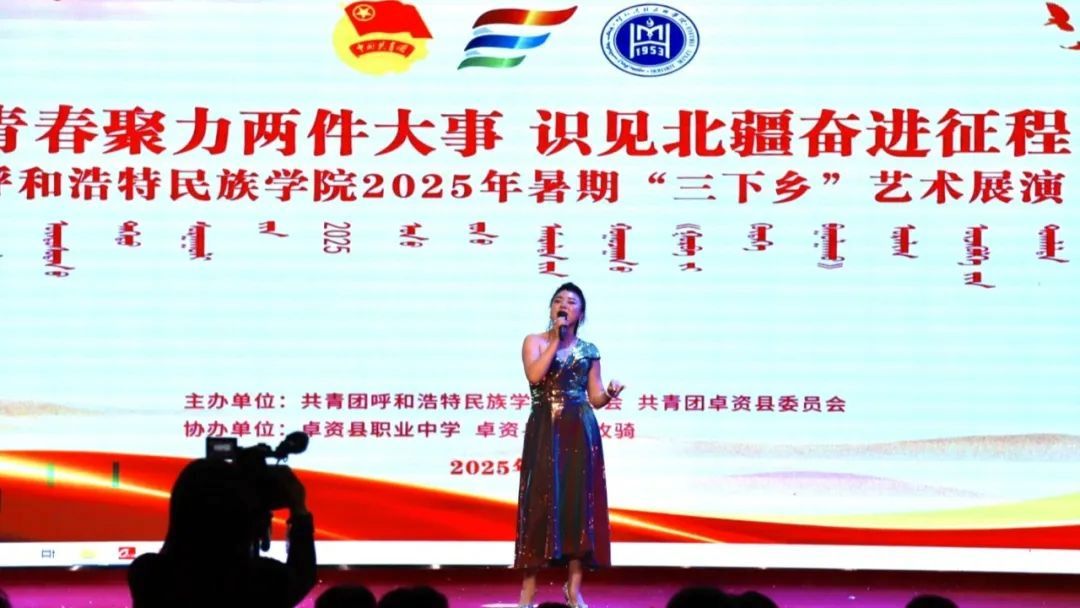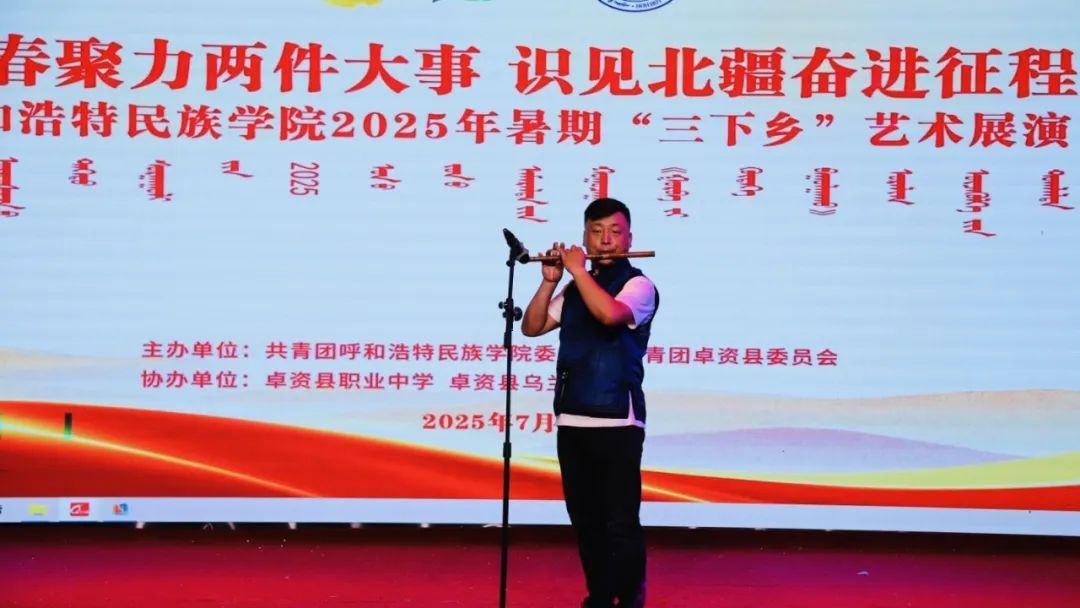 夜幕降臨,我校團委攜手卓資縣烏蘭牧騎、卓資縣職業中學,共同舉辦“青春聚力兩件大事 識見北疆奮進征程”呼和浩特民族學院2025年暑期“三下鄉”藝術展演。開場舞《你要跳舞嗎》活力開場,瞬間點燃氣氛;長調《小駿馬》旋律悠揚,傳遞草原風情;朗誦《月光下的中國》深情款款,訴說愛國情懷;合唱《我們都是追夢人》激昂有力,彰顯青年之志;武術《武動青春》剛勁有力,盡顯中華武魂;隨后,由卓資縣烏蘭牧騎帶來的《山曲對唱》、卓資縣職業中學帶來的《宴歌》等節目輪番上演。最后,舞蹈《四海歡歌》為展演畫上圓滿句號。