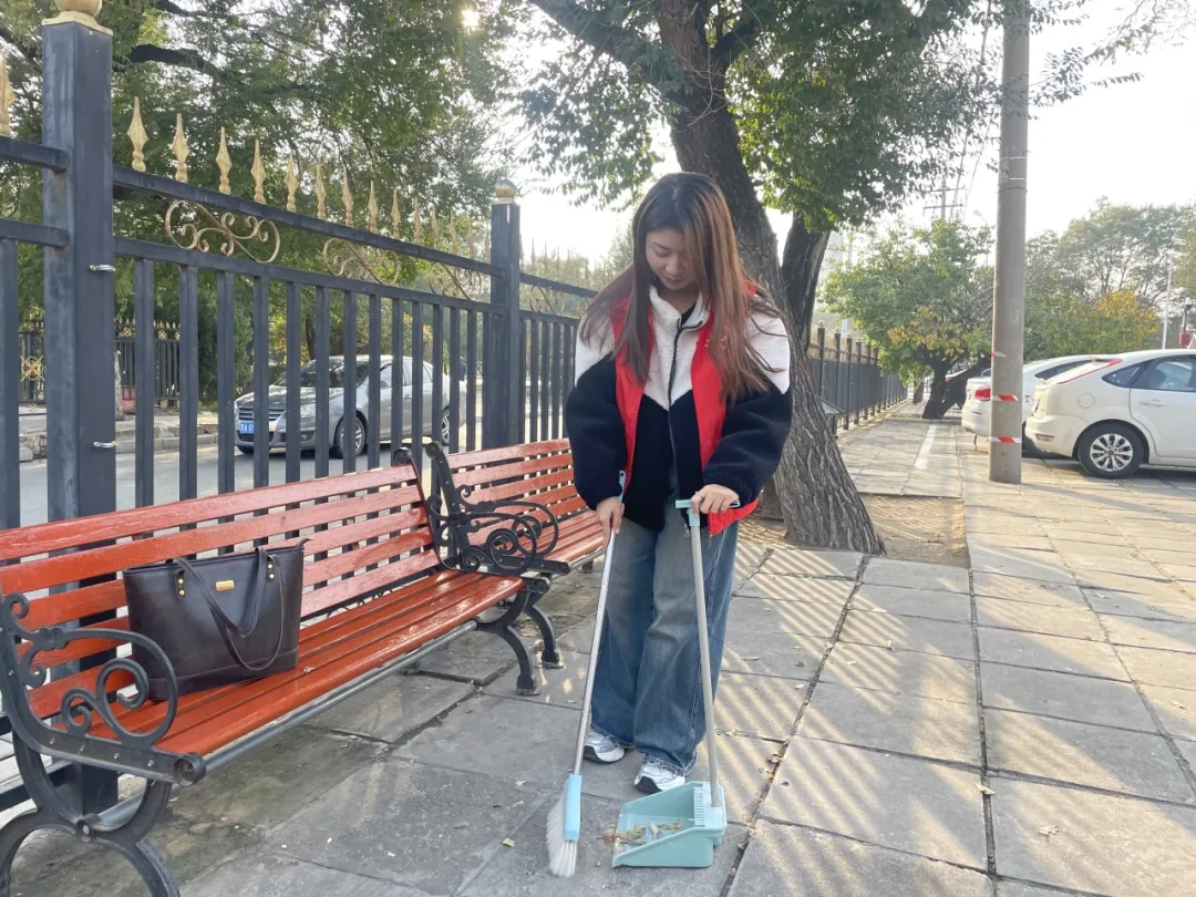 文化傳承的使命在心底扎根,這份赤誠便化作俯身實踐的熱忱。紅馬甲的亮色,很快鋪滿了古院的角落,同學們整理展陳周邊的環境——每一次彎腰,都是對文化遺產的珍視;每一處清掃,都是對“共同體家園”的呵護。